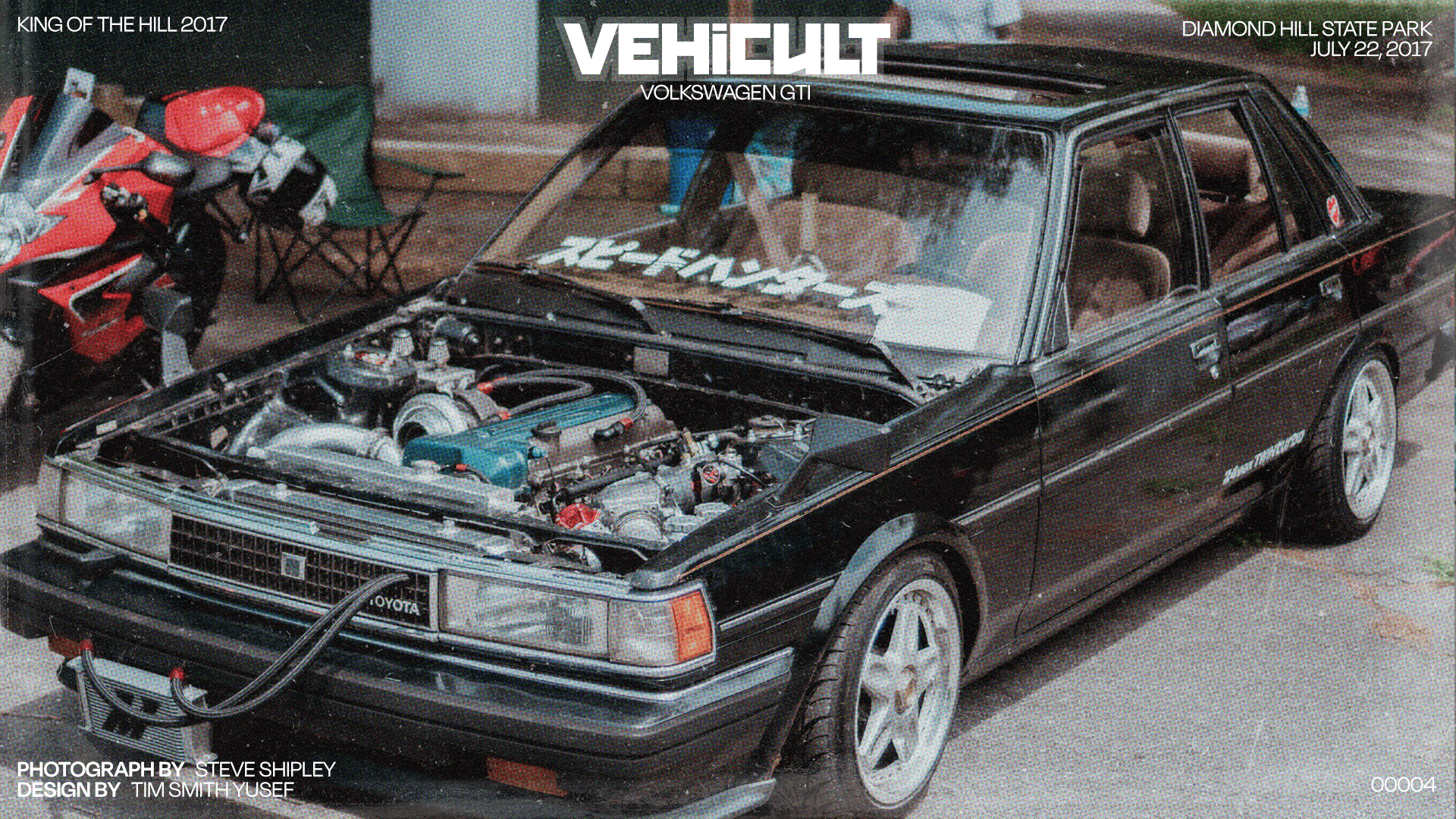 This brand identity and poster series for Vehicult captures the raw energy of car culture through bold typography, cinematic photography, and a distinctly retro-modern visual voice. The logomark’s blocky geometry and sharp angles channel the attitude of vintage motorsport graphics, while the gritty, film-inspired textures ground each poster in an authentic street-meet atmosphere. Designed as a cohesive visual system for an Instagram automotive community, the series highlights iconic builds, locations, and moments—celebrating the machines, the gatherings, and the culture that fuels them.